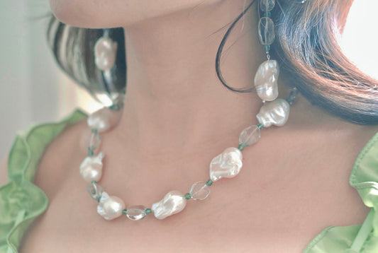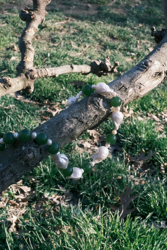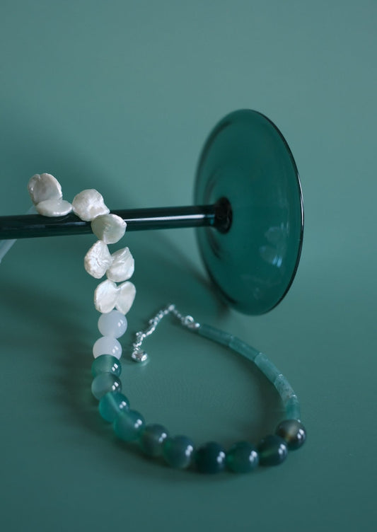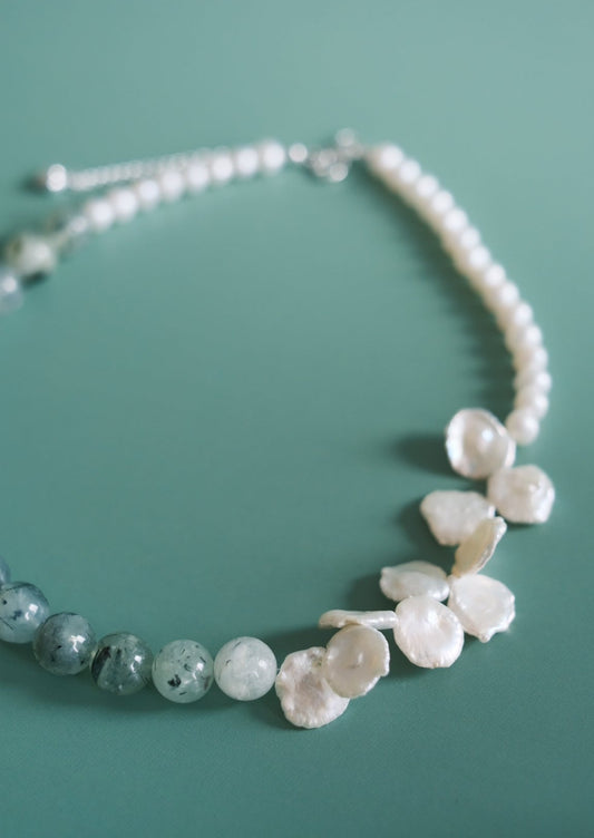 Moss Agate & Cornflake Pearl Serenity Necklace